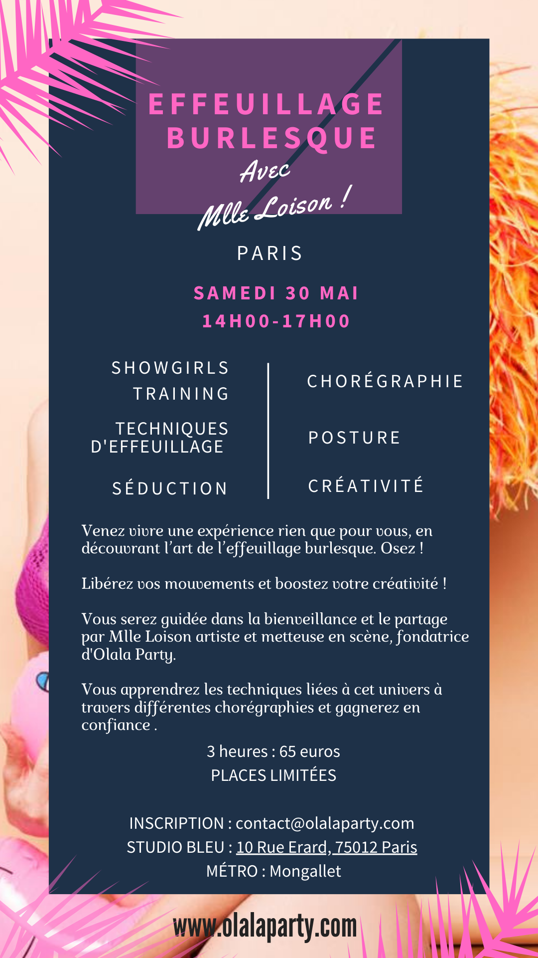 Stage Intensif 3h Effeuillage Burlesque / Samedi 30 Mai 14h-17H – Paris / Mlle Loison
